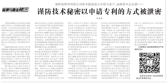隨著該案的宣判,光達(dá)化工的“抑制碳鋼鹽水腐蝕的環(huán)保緩蝕劑及其制備和使用方法”技術(shù)秘密通過(guò)專利申請(qǐng)被泄密一事浮出水面。